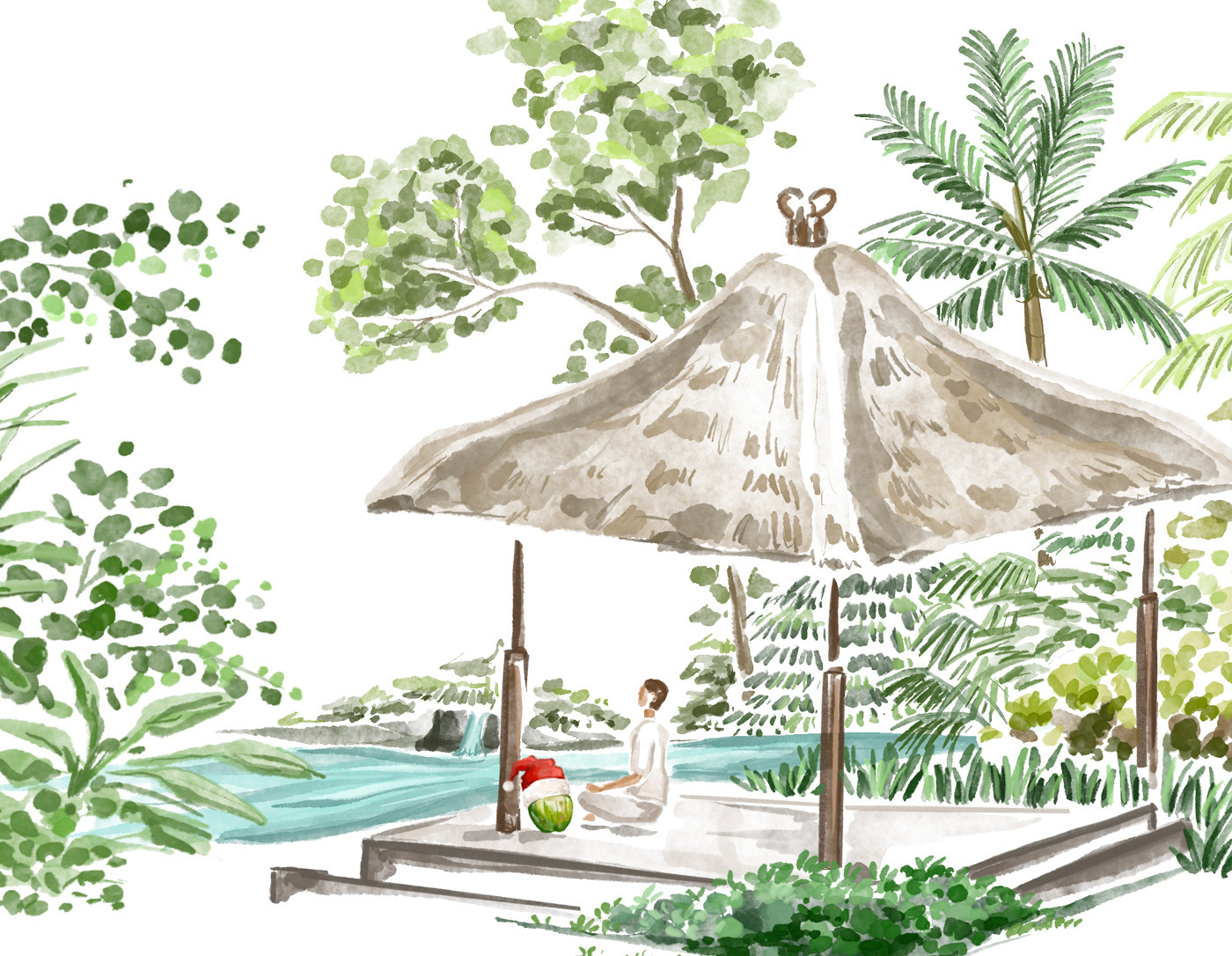 This joyful project involved illustrating a festive campaign for Four Seasons Resort Bali, both at Jimbaran Bay and at Sayan, featuring playful moments like surfing Santa, themed kids’ activities, and seasonal decorations. Through vibrant watercolor illustrations, I helped bring the resort’s holiday spirit to life in a fun and engaging way for families.